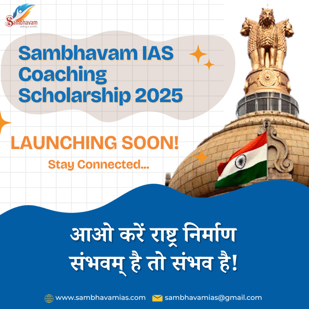 हमें यह घोषणा करते हुए गर्व हो रहा है कि हम जल्द ही संभवम् स्कॉलरशिप 2025 का शुभारंभ करने जा रहे हैं। यह भारत के मेधावी और जरूरतमंद आकांक्षी सिविल सेवकों के लिए हमारे प्रतिष्ठित IAS कार्यक्रम में 98% तक की स्कॉलरशिप प्राप्त कर शामिल होने का अवसर होगा।